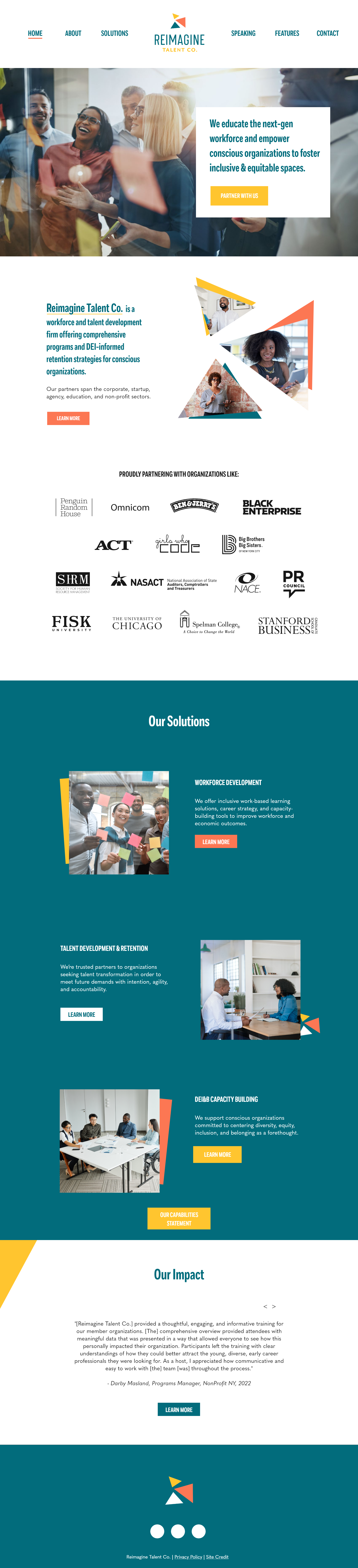 The mission was clear—to develop a powerful brand identity and a more aligned website that would support Reimagine Talent Co.'s vision for the future. By changing their name from College Code to Reimagine Talent Co., they aimed to honor their mission of reimagining work and career, while attracting more 6-figure corporate contracts and establishing themselves as a trusted authority in talent development & retention and workforce development.
